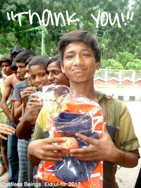 A few months ago Restless Beings carried out the ‘(link /campaigns/my-ramadan-resolution text:My Ramadan) Resolution’ campaign to give street children Eid gifts (consisting of a meal, new clothes and educational books) at the end of the spiritual month of Ramadan.